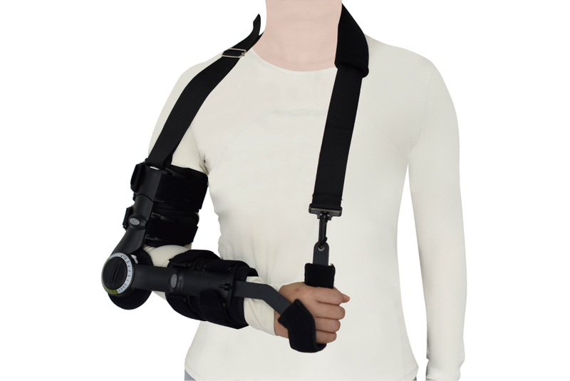 Fixes the elbow at a specific angle and position, limiting unnecessary movement